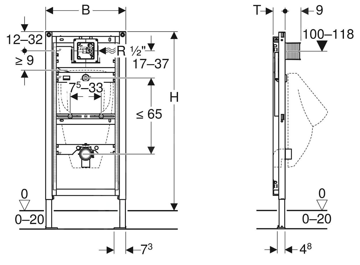 Geberit Duofix - Předstěnová instalace pro pisoár, univerzální, výška 112–130 cm 111.616.00.1
