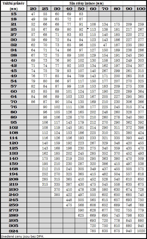 je vyrobeno z minerální čedičové vaty, má tvar dutého podélně děleného válce vyrobeného z jednoho nebo více segmentů, se zámkem zamezujícím tepelným ztrátám přes podélnou drážku.