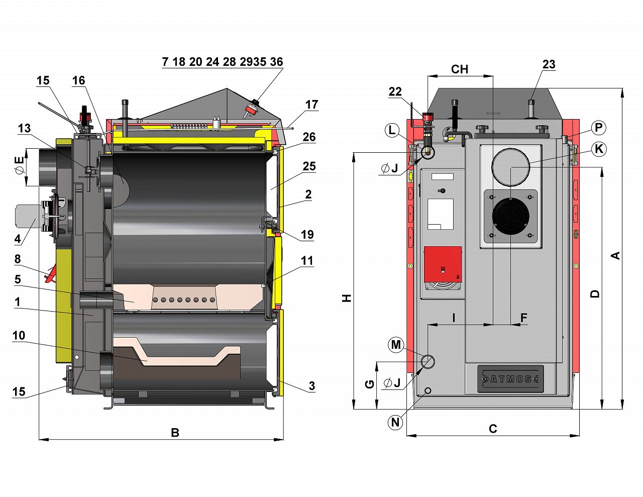 Je konstruován pro spalování dřeva, na principu generátorového zplynování s použitím odtahového ventilátoru (S), který odsává spaliny z kotle, nebo s použitím tlačného ventilátoru, který vhání spalovací vzduch do kotle.