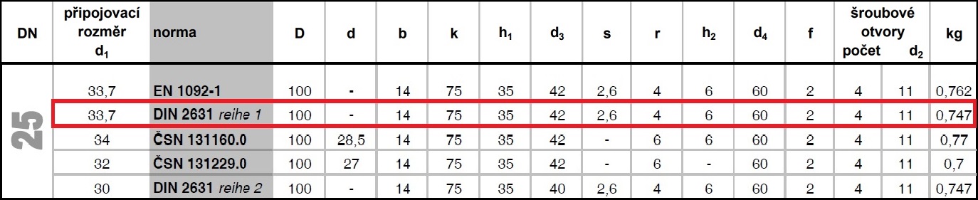Příruba krková DN25