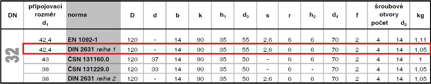 Příruba krková DN32