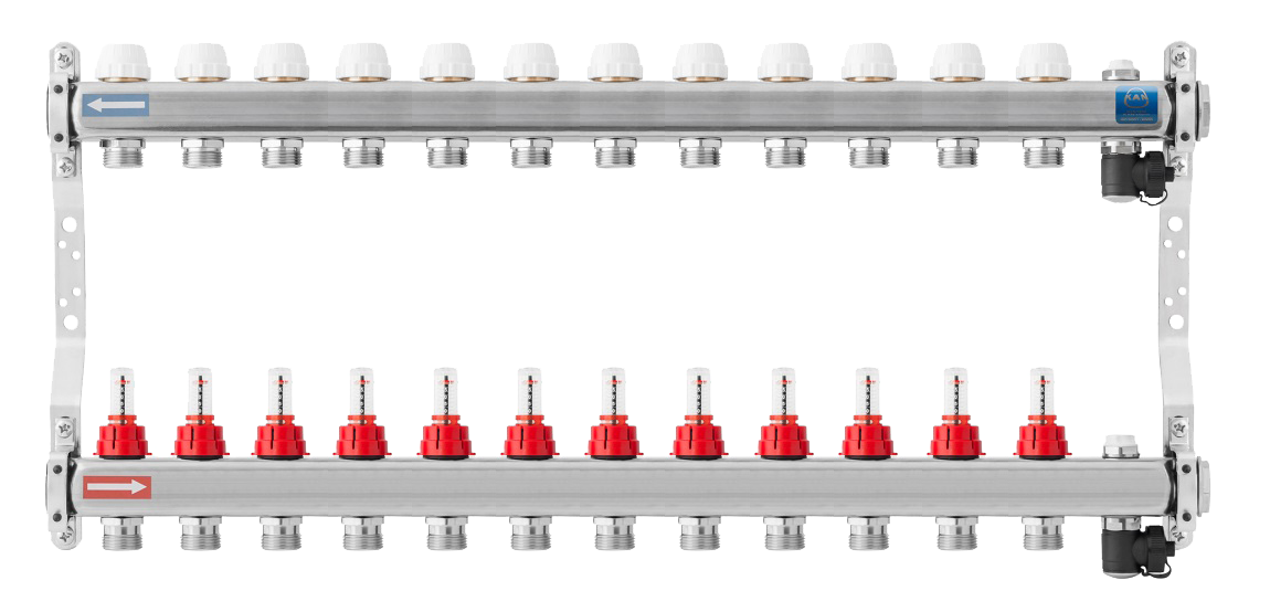 Rozdělovač 12-okruhový vhodný pro podlahové vytápění.