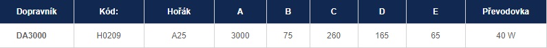 o délce 3 m a průměru 75 mm (převodovka 25 W)