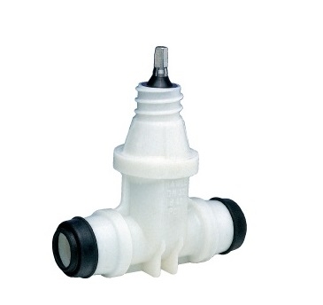Šoupátko ISO pro domovní přípojky, z POM na obou stranách s hrdlem ISO pro potrubí z PE.