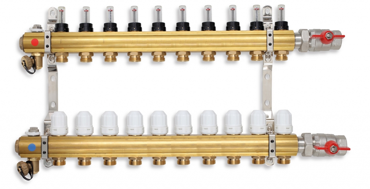 Rozdělovač 10-okruhový vhodný pro podlahové vytápění.