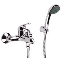 Vanová nástěnná baterie, pevný držák, hadice 150cm, růžice.